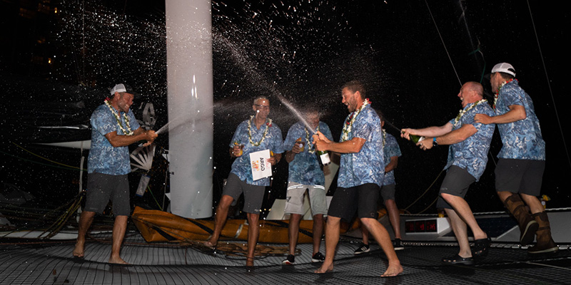After Jason Carroll's Argo crossed the finish line at Diamond Head last night 20:52:32 local time, only 29 minutes later Peter Cunningham's PowerPlaycrossed the line, followed 6.5 hours later by Giovanni Soldini's Maserati, ending the rivalry between all three MOD 70 trimarans in the 50th edition of the Transpacific Yacht Race. For over four days these teams battled with each other, one (Maserati) limping for a while due to impact damage after the first day of the race, but never giving up.