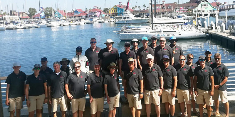 After the same slow start that plagued all Saturday starters this year in the 50th edition of the LA-Honolulu Transpac, Jim Cooney and Samantha Grant's VPLP 100 Comanche still managed to sneak out of the light air, get into the offshore breeze, and sail on to be first to finish in Honolulu at 21:14:05 Hawaii time. For being the first monohull to cross the finish line at Diamond Head, the Comanche team will win the coveted First to Finish carved slab of Hawaiian Koa wood known as the Barn Door Trophy. From 2009-2017 this award was given only to yachts with no powered systems, but was re-dedicated this year for monohull yachts of all sizes and types.