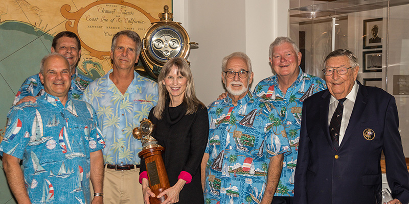 The Transpac Honolulu Race Elapsed Time Record Trophy (aka The Clock Trophy) was reset to the monohull race record set in the 2017 Transpac Race by Jim Clark’s 100-foot COMANCHE in a ceremony at Newport Harbor Yacht Club on Saturday, May 11th. The last time this clock was set was in 2009 by Neville Crichton’s R/P 90 ALFA ROMEO at a time of 5 days 14 hours 36 min 20 sec.