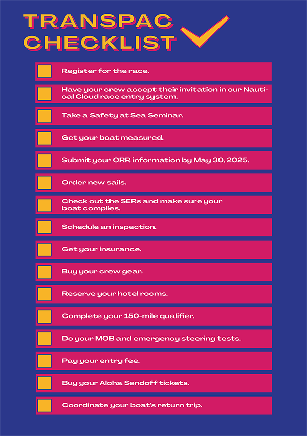 One of the requirements for the 2025 Transpac is that each yacht shall have completed a 150-nautical mile or longer sailing race or sailing passage, without motoring. In spite of this year’s cancellation of the popular Newport Beach to Cabo San Lucas race, there are several West Coast options to meet the requirement. Shakedown your crew and boat with a race that goes beyond the harbor buoys.