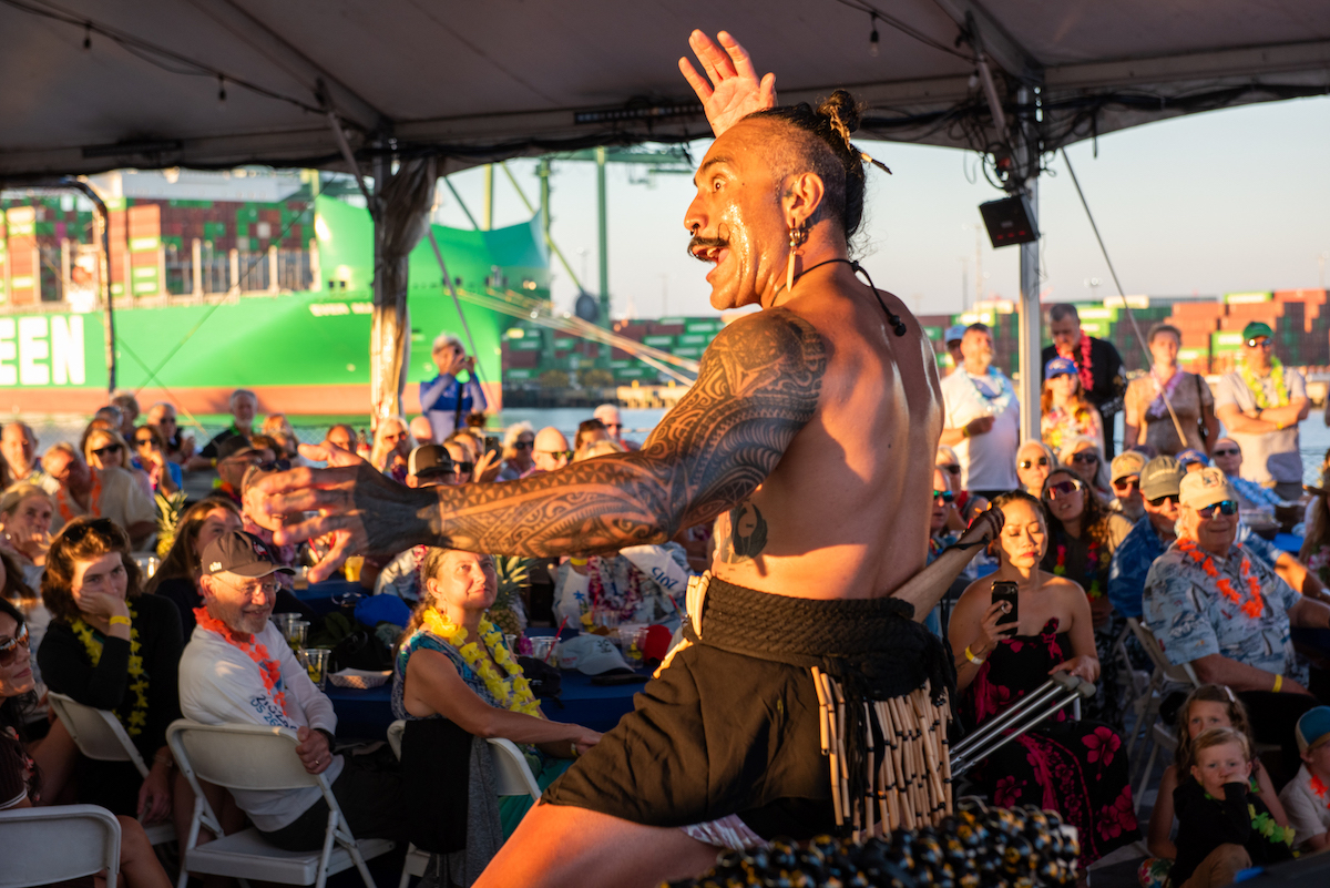 Afa, a Maui/Tongan dancer, followed with a stunning New Zealand haka — a powerful performance that overwhelmed the crowd. “This isn’t about a gentle blessing,” explained Kamalei. “This is telling these sailors they have good mana and will go into this voyage with strength. These sailors are about to embark on a voyage that most people will never do in their lifetime.”