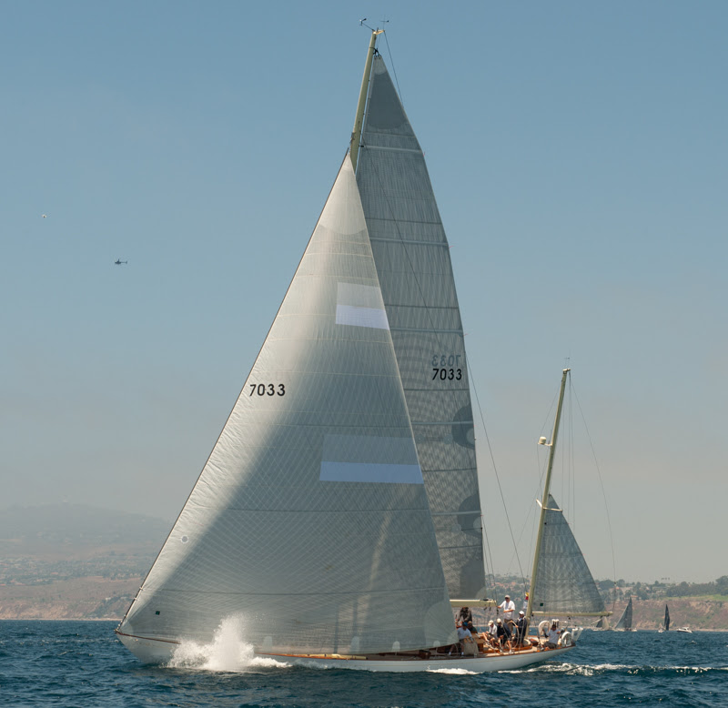 The 67-footer is one of Transpac's classic entries, the 1939 S&S yawl Chubasco, campaigned this race by a syndicate from Long Beach YC led by Tom Akin, Doug Baker, John Carpenter and Will Durant, who signed on an all-star pro-am crew for this race. Despite her age and grandeur, Chubasco was mixing it up among boat types many generations her junior, and was very much in the fray at a crowded pin end of the start line.