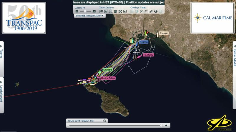 On a classic So Cal summer day with the sun burning through the morning haze to help along a building seabreeze, the first wave of 33 monohulls and 2 multihulls set off for Hawaii today in the 50th edition of the 2225-mile LA-Honolulu Transpac. Race organizers from the Transpacific YC started the multihulls first, followed 30 minutes later by the large group of monohulls, who ranged in size from 33 to 67 feet in length.