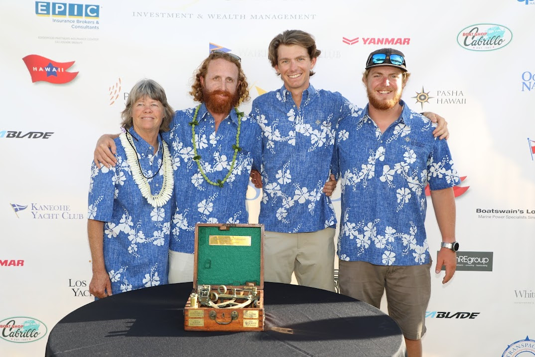 This latter team from Michigan was the first monohull to cross the finish line, completing the 2225-mile course in only 8 days 16 hours 12 minutes and 17 seconds. This impressive time was only bettered by three much larger Saturday starters in the fleet racing in Cal Maritime Division 1: Sebastien Moshayedi’s Bakewell-White 100 RIO100, George Hershman and Mark Comings’ Reichel/Pugh 63 GOODENERGY and Tom Holtus’ Botin 56 BADPAK, who received their awards earlier this week as well.