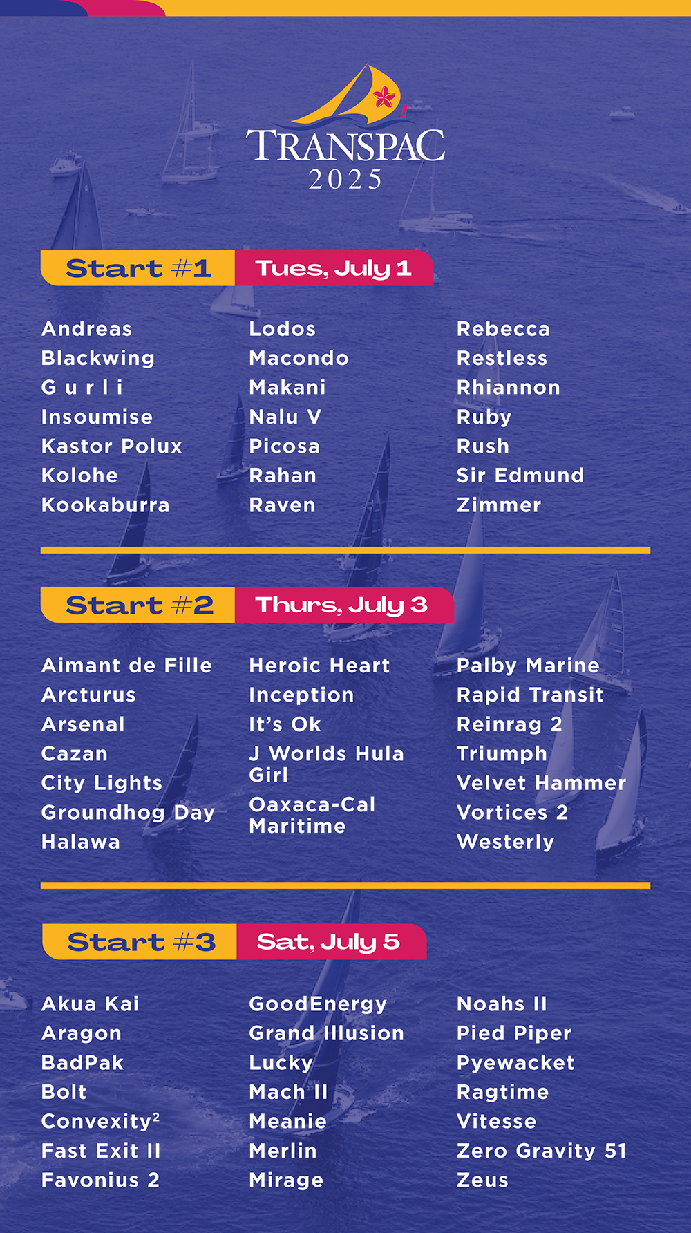 Join us on Saturday, June 28, 6:00-9:00pm, aboard the USS Iowa in San Pedro to celebrate the skippers and sailors racing in the 2025 Transpac and wish them fair winds and best of luck.