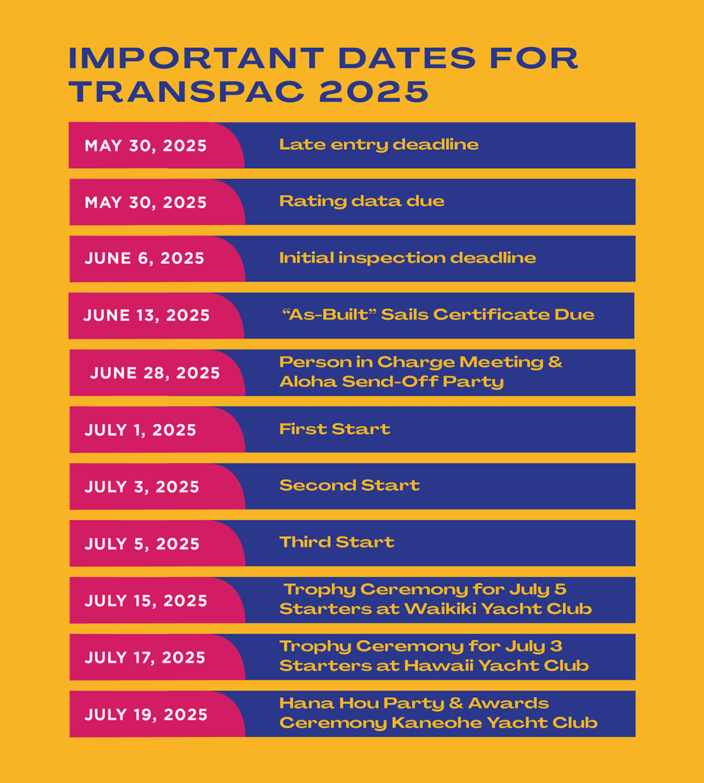 The Transpacific Yacht Club would like to remind competitors of several rule changes and updates that are different than in years past.