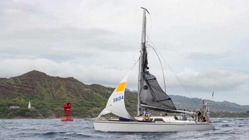 "For a while we tried two headsails to go downwind, keeping the main centered, and we could go 5-6 knots," said Brea. But this rig reverted back to the trysail when on the final reach from Koko Head to Diamond Head.