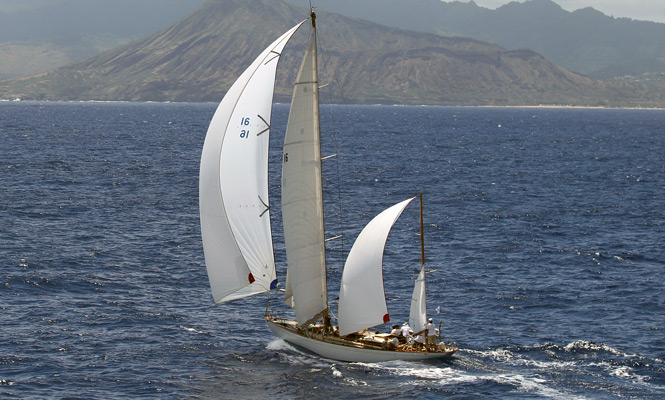 In 1929, the brand-new yacht design firm of Sparkman & Stephens was given a commission to design a fast offshore sailing yacht. Built in wood with innovative features like steam-bent rather than sawn frames to keep her light, the 52-foot Dorade was born, and quickly proved to be a breakthrough design. Over the next several years, Dorade won the most prestigious ocean races of the era: the Bermuda Race (1930) the Transatlantic Race (1931), the Fastnet Race (1931 & 1933), and in 1936 under her new owner James Flood, the Honolulu Race as well. No boat has since amassed such an impressive string of victories.