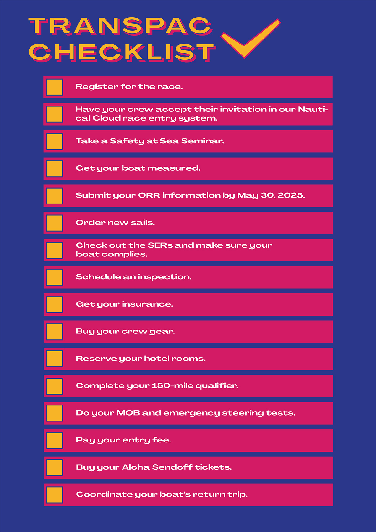 TRANSPAC CHECKLIST: MAKE PLANS TO SHIP YOUR GEAR