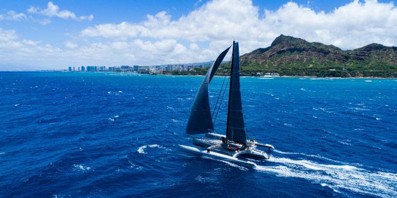 With a finish time of 19:34:25 HST today, Manouch Moshayedi's Bakewell-White 100 RIO100 has become the fastest monohull without powered performance systems to finish the 50th edition of the biennial 2225-mile LA-Honolulu Transpacific Yacht Race. In so doing she has won the Merlin Trophy, which this year was re-defined from its original criteria of being awarded to the fastest monohull of any configuration in the race.
