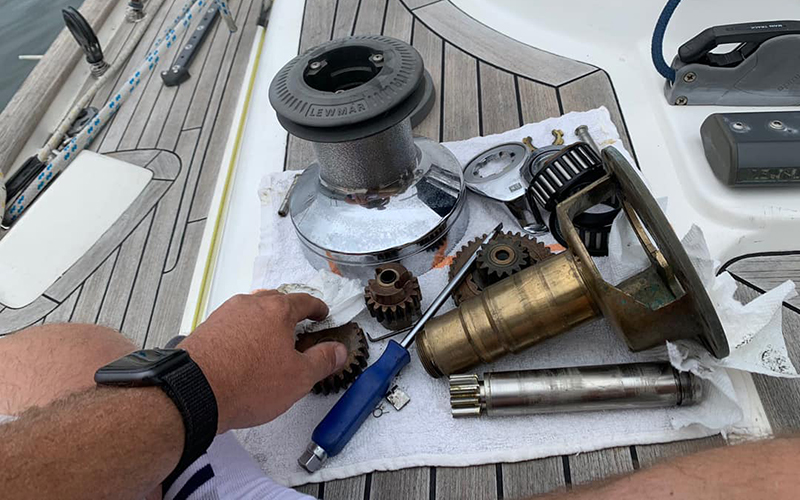 It was a great weekend at Transpac Race Village! We saw a lot of our friends, fixed an electric winch, and sorted out our odds and ends and spare parts bins! Today we are on site at Transpac Pier and we’re happy to be joined by Sam Vineyard from Marlow Ropes! He will be here today and tomorrow at our booth. We were also joined on the pier by North Sails who have set up a great looking lounge just across from us!