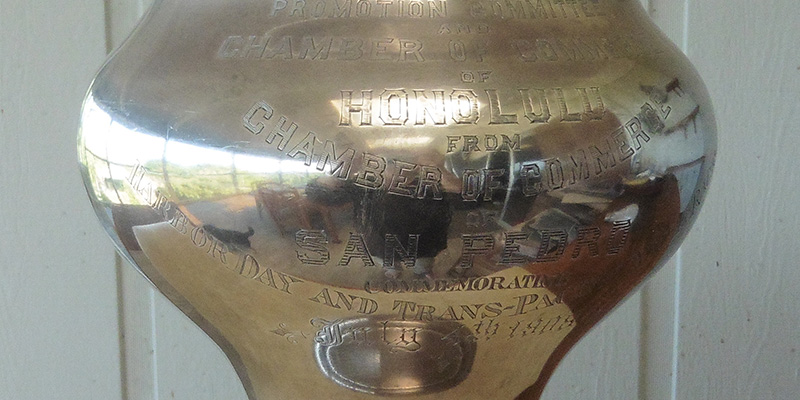 Whittier Trust's relationship to the LA-Honolulu Transpacific Yacht Race dates back to 1923 when racing resumed following World War I. Six boats were entered and Poinsettia, the scratch boat, was perhaps the most colorful. This big 107-foot yawl was built in Germany before the war for the German Crown Prince, Frederick. She was a pure racing machine, designed for Kiel Canal competition and she had never been defeated. Poinsettia carried 5,941 square feet of sail with an enormous main that was a real brute to hoist.